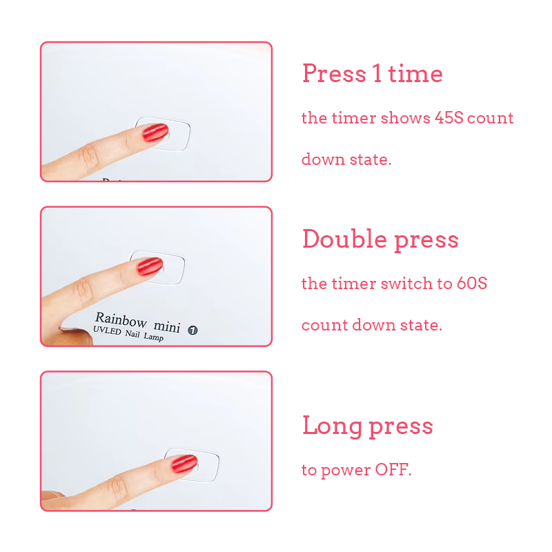한국어Shenzhen Ruina Optoelectronics Co., Ltd., som Kinas ledande tillverkare, leverantör och exportör av Compact Gel Nail Drying Lamp, upprätthåller konsekvent filosofin att sträva efter perfekt kvalitet. Detta engagemang har gett våra UV-limmade spiklampor för hemmabruk ett förtroende hos många kunder. Exceptionell design, förstklassiga råvaror, enastående prestanda och mycket konkurrenskraftiga priser – det är precis vad varje kund förväntar sig och vad vi levererar. Naturligtvis är heltäckande service efter försäljning lika oumbärlig.
