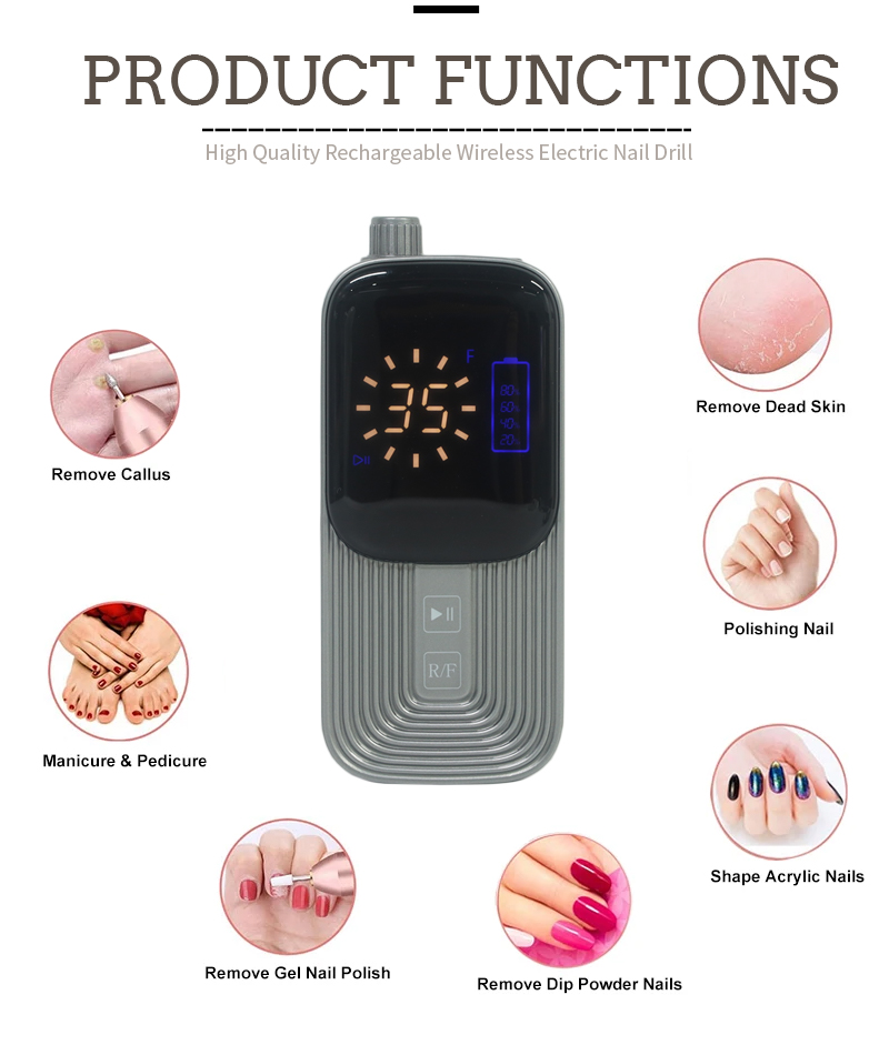 Nagelborrset elektriskt för att ta bort gellack 65w 35000rpm