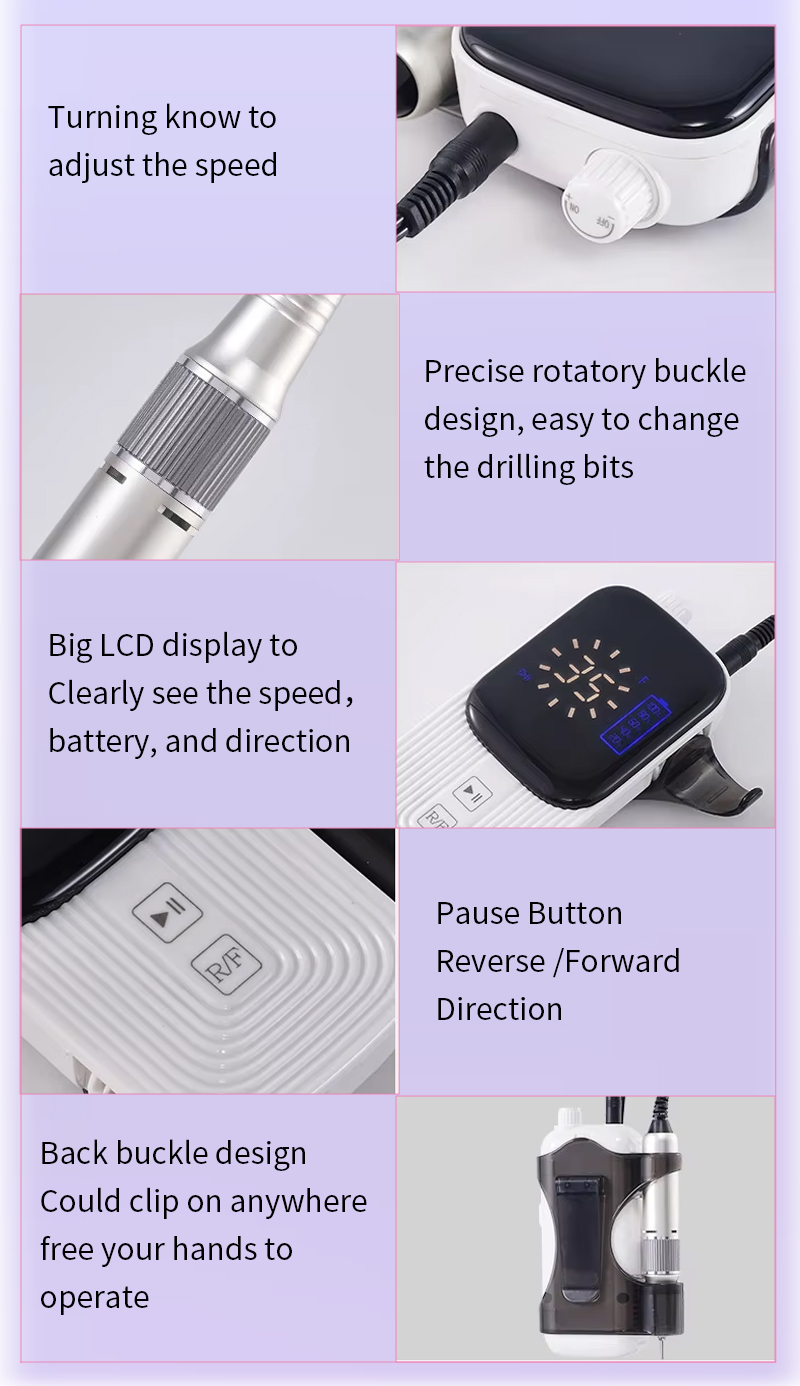 Produktfunktioner och tillämpningar av TMS-023 höghastighets 35 000 rpm elektrisk nagelfil för avlägsnande av nagellack
