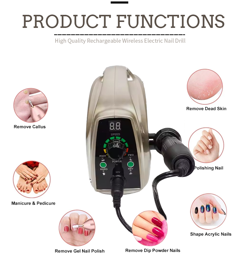 Produktfunktioner och tillämpningar av DM-014A höghastighets 35 000 rpm elektrisk nagelfil för avlägsnande av nagellack