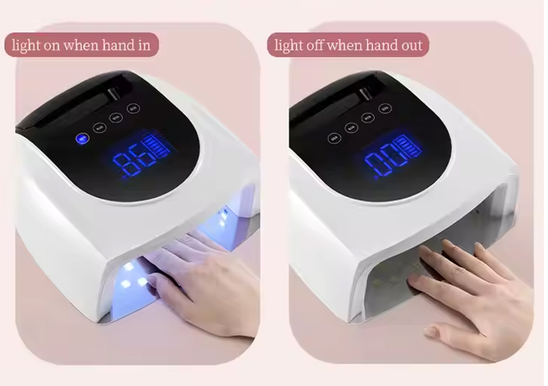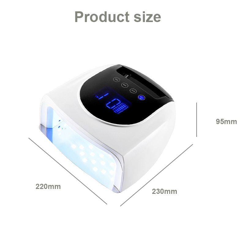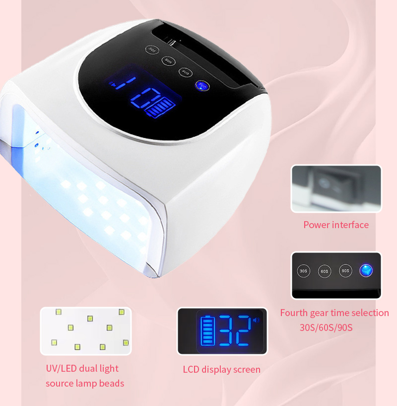 Produkten säkerställer en jämn limtorkning utan att krympa. Dess dubbla ljuskällor ger skonsam uppvärmning för att förhindra missfärgning av händerna och ansträngda ögon, lämplig för både händer och fötter, vilket ger anmärkningsvärt snabbtorkande resultat.