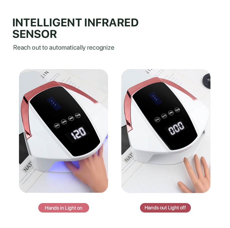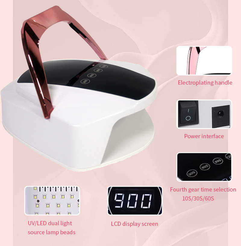 Produkten säkerställer en jämn limtorkning utan att krympa. Dess dubbla ljuskällor ger skonsam uppvärmning för att förhindra missfärgning av händerna och ansträngda ögon, lämplig för både händer och fötter, vilket ger anmärkningsvärt snabbtorkande resultat.