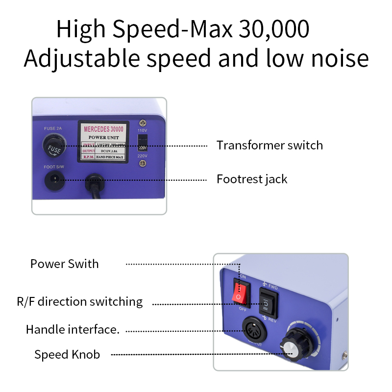 1, Justerbar hastighet, kraftfull motor, höghastighetsslipning, oändlig rattad realtidshastighetsjustering.