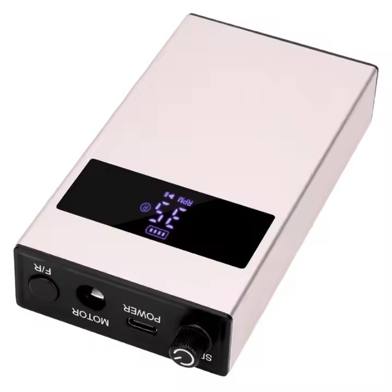 Skärmdesignen på denna bärbara spikborrsats med låg ljudnivå har en på/av-brytare och rotation framåt/bakåt för totalt enknappsaktivering, ett snabbladdningsuttag i botten, ett utbytbart borrhylsa upptill och en justerbar hastighet i tre lägen för att möta en mängd olika behov.