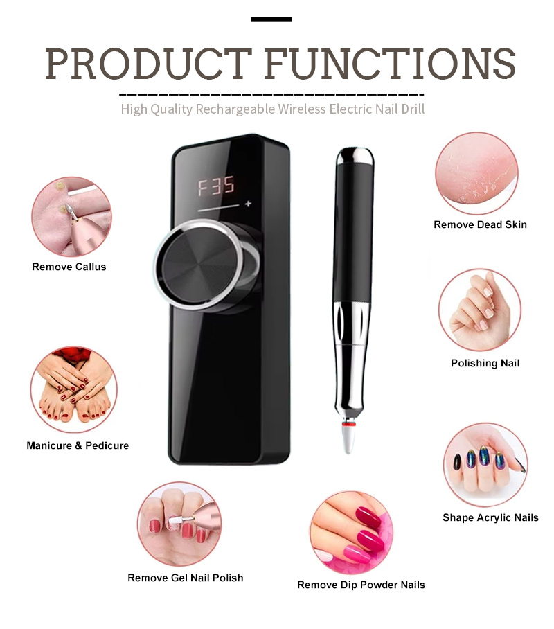 Produktfunktioner och tillämpningar av modellen 109 höghastighets 35 000 rpm elektrisk nagelfil för polsk borttagning