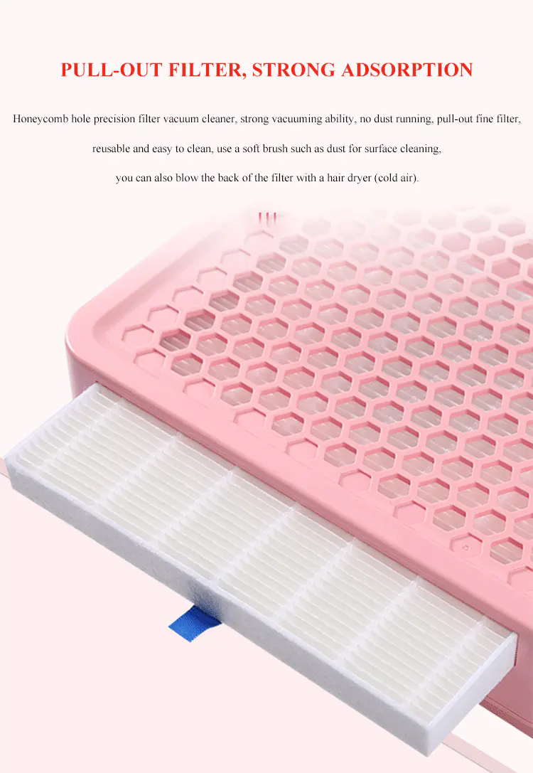 2)Produktprecisionsfilter filtrerar effektivt en mängd nageldammdöd hud och andra föroreningar, täta filter läcker inte dammadsorption av dammförmåga.