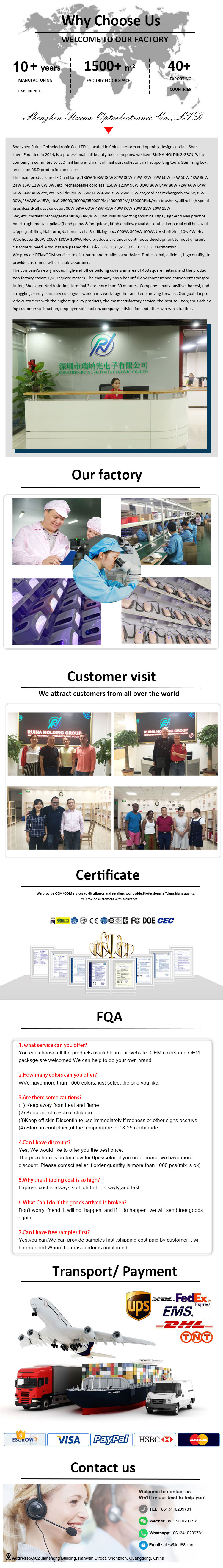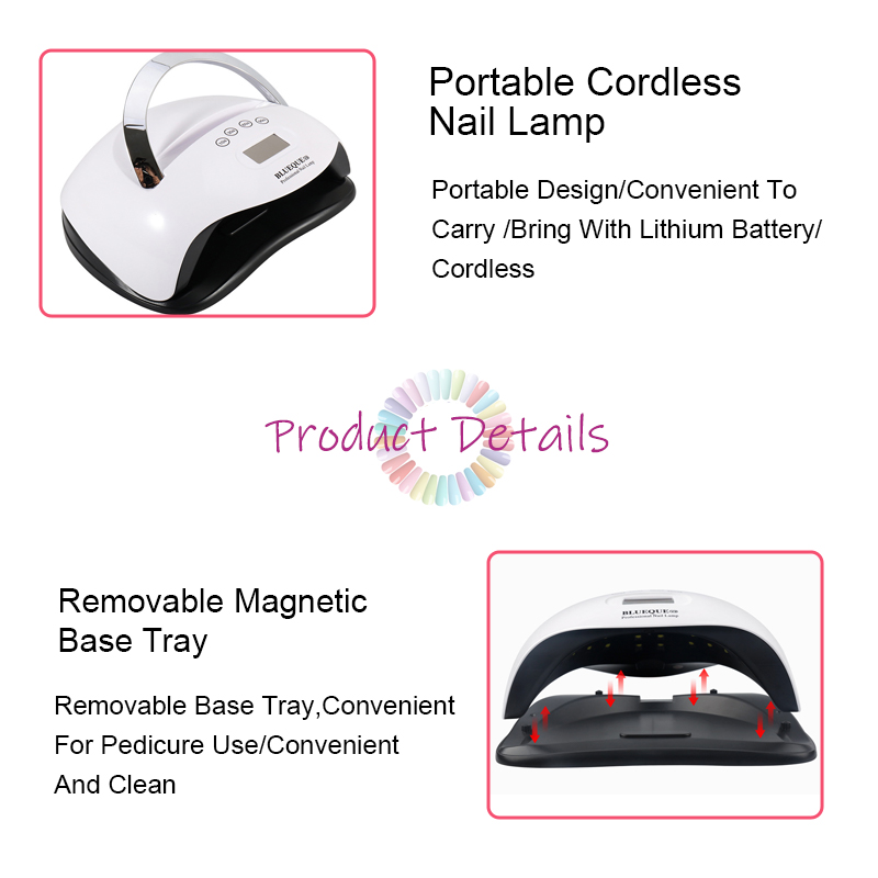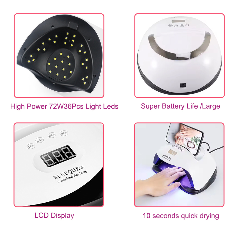 Produkten säkerställer en jämn limtorkning utan att krympa. Dess dubbla ljuskällor ger skonsam uppvärmning för att förhindra missfärgning av händerna och ansträngda ögon, lämplig för både händer och fötter, vilket ger anmärkningsvärt snabbtorkande resultat.