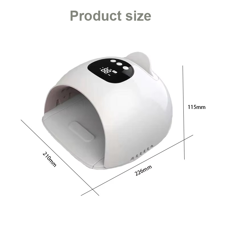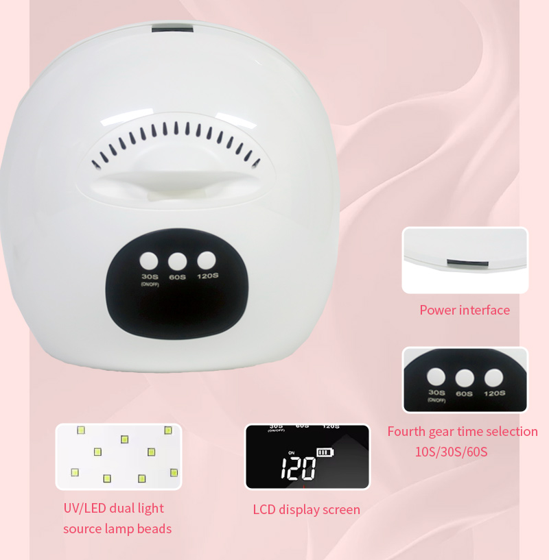 Produkten säkerställer en jämn limtorkning utan att krympa. Dess dubbla ljuskällor ger skonsam uppvärmning för att förhindra missfärgning av händerna och ansträngda ögon, lämplig för både händer och fötter, vilket ger anmärkningsvärt snabbtorkande resultat.