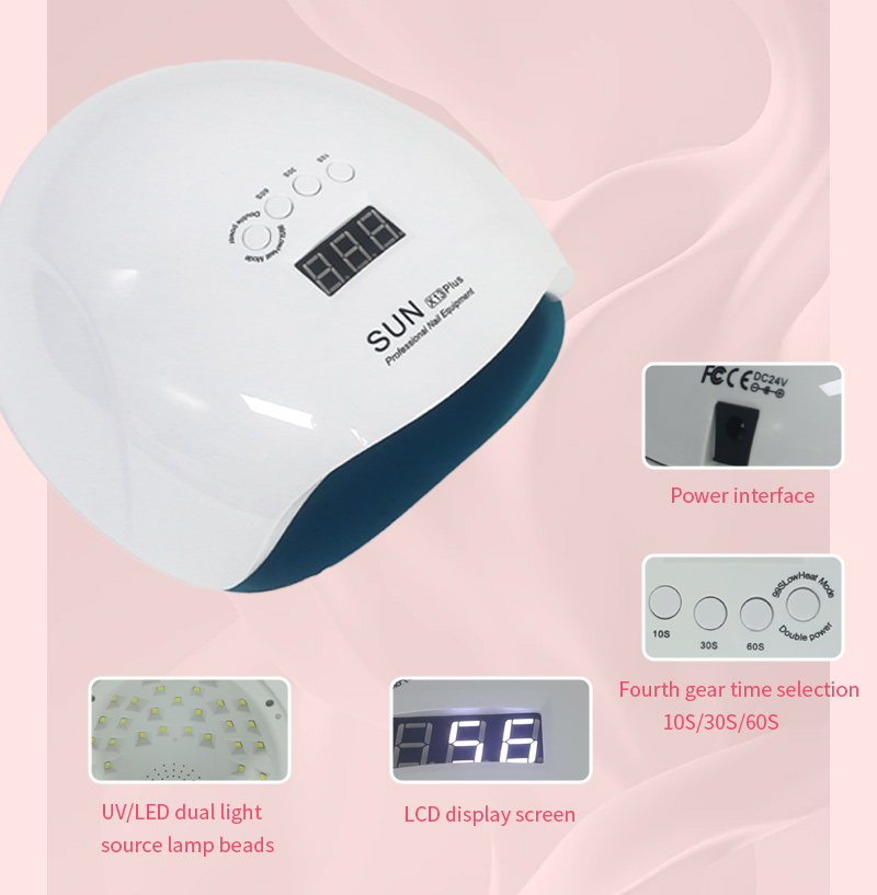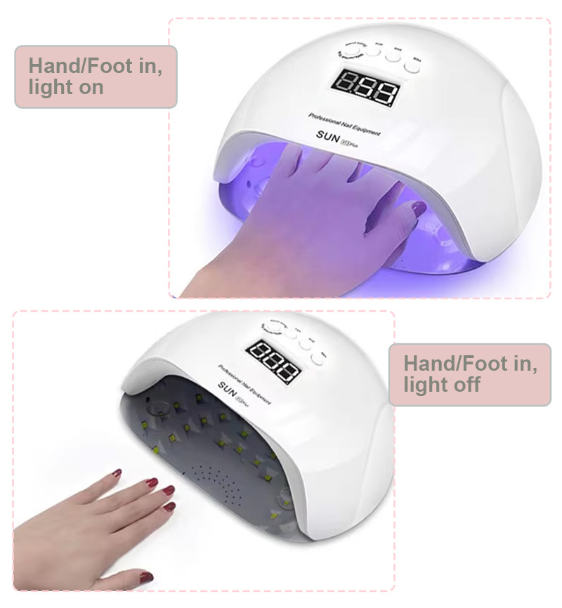 Produkten säkerställer en jämn limtorkning utan att krympa. Dess dubbla ljuskällor ger skonsam uppvärmning för att förhindra missfärgning av händerna och ansträngda ögon, lämplig för både händer och fötter, vilket ger anmärkningsvärt snabbtorkande resultat.