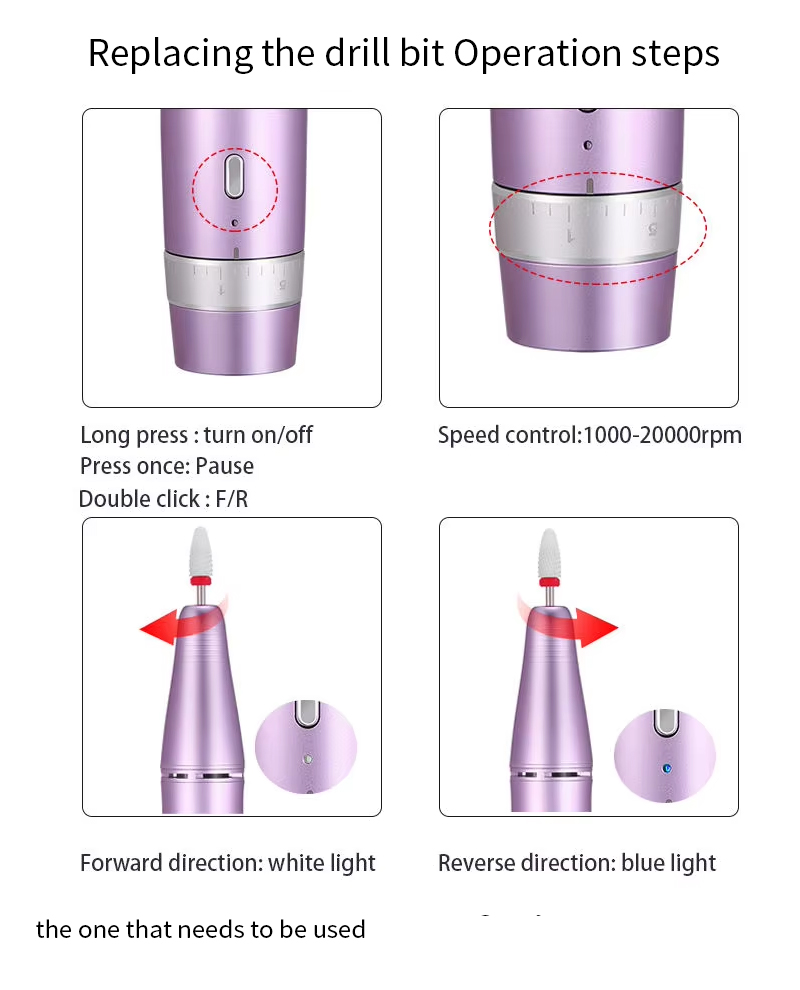 Produktfunktioner och tillämpningar av UV-1001 höghastighets 20 000 rpm elektrisk nagelfil för avlägsnande av nagellack