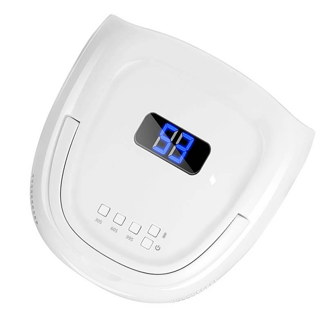 Uppladdningsbar manikyrmaskinlampa 60W produktvisningsområdesdesign, det finns strömknapp, punktdisplayknapp, tidsknapp 30s/60s/99s och oval LCD-skärm med hög upplösning för att visa härdningstiden. Tidsinställd torkning av nagellack kan göra att nagelstilen kan bibehålla de bästa resultaten.