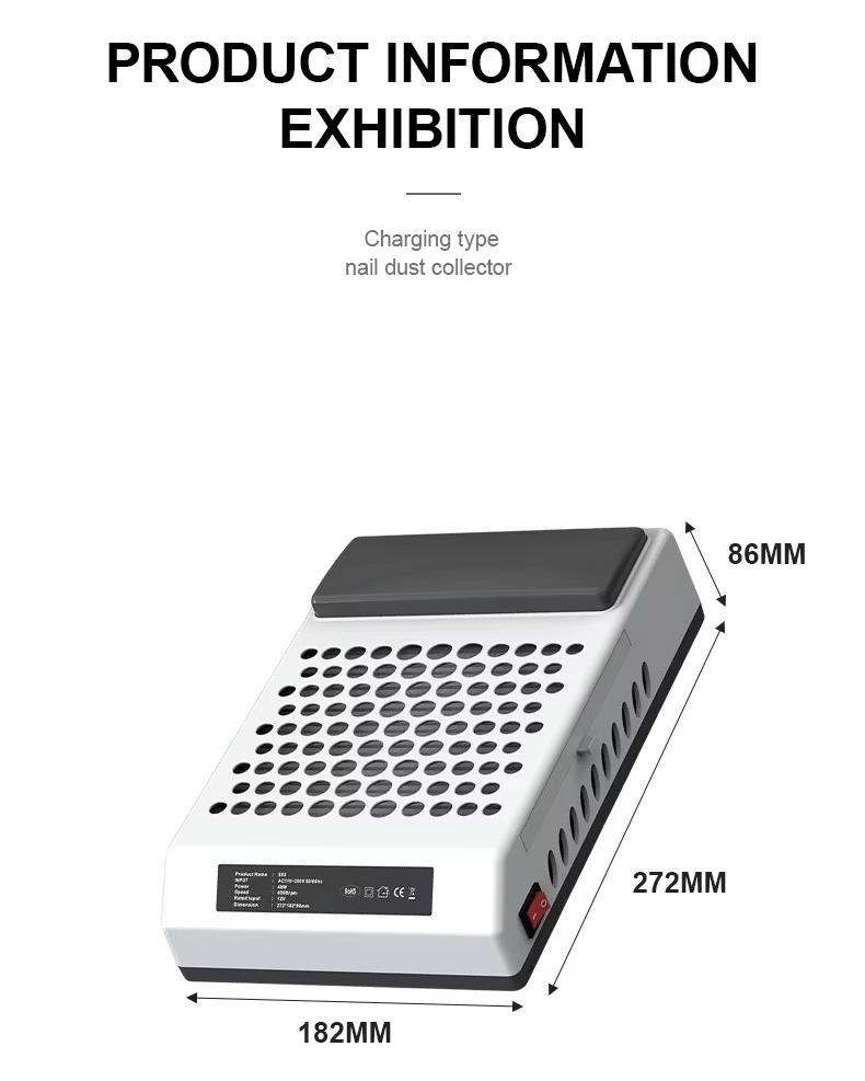 Uppladdningsbar nageldammsfläkt med filter 40w