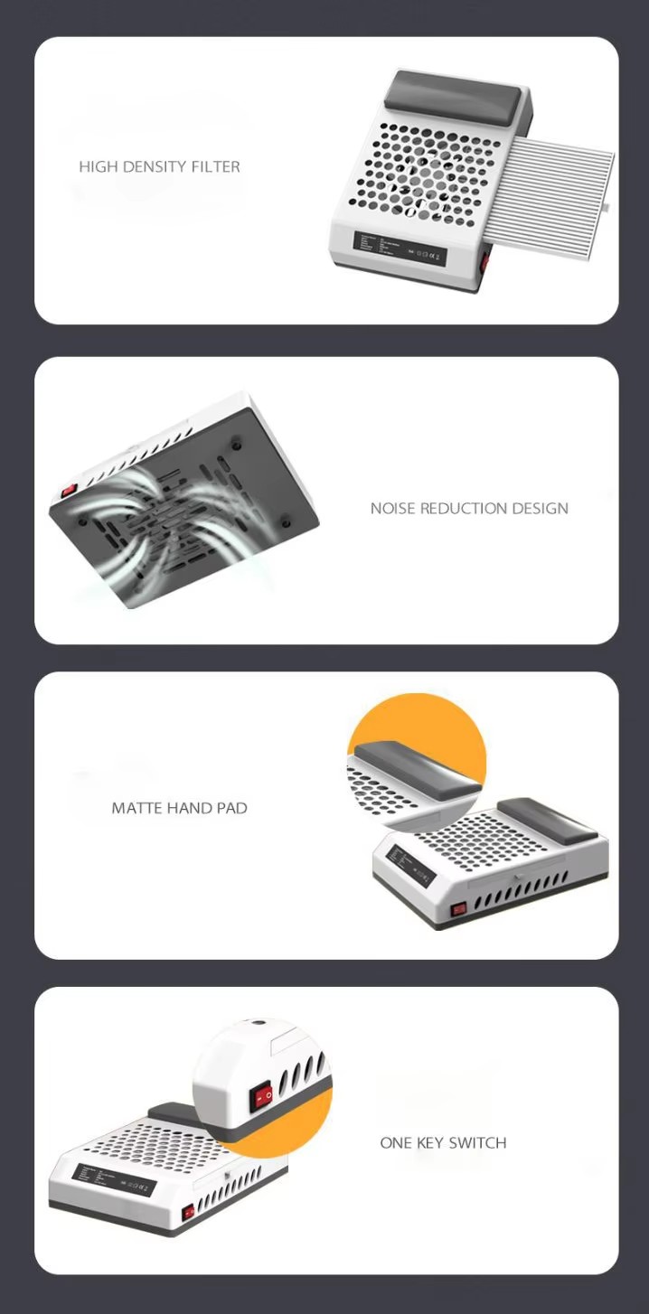 2)Produktprecisionsfilter filtrerar effektivt en mängd nageldammdöd hud och andra föroreningar, täta filter läcker inte dammadsorption av dammförmåga.