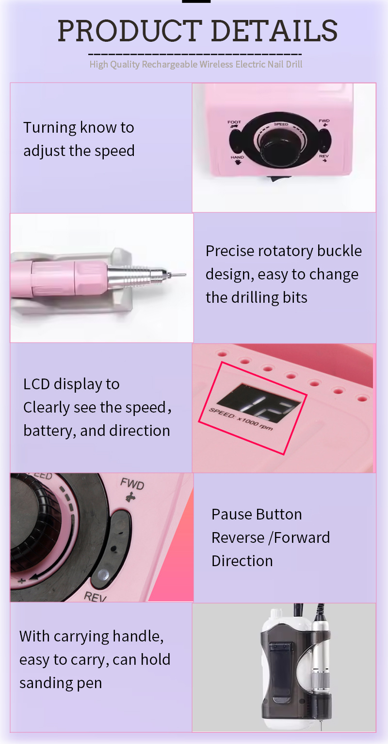 ZS-716 Höghastighet 35 000 varv / min nagellack Remover Electric Nail File Produktfunktioner och applikationer
