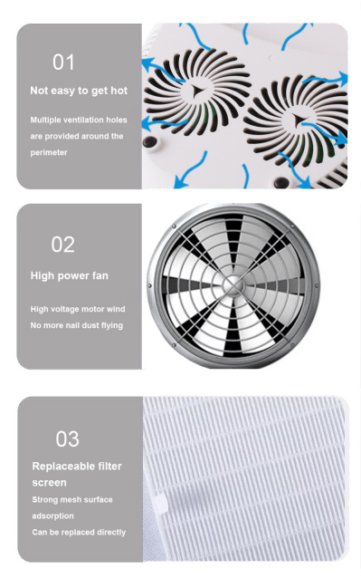 Trippelkombination handhållen nagellampa med kudde har infraröd smart avkänningsteknik som automatiskt tänds när händerna närmar sig och släcks när händerna rör sig bort – vilket eliminerar besväret med att trycka på knappar upprepade gånger och sparar tid och ansträngning. Högeffekts baklim kräver ingen lång väntan, vilket sparar både tid och ansträngning.
